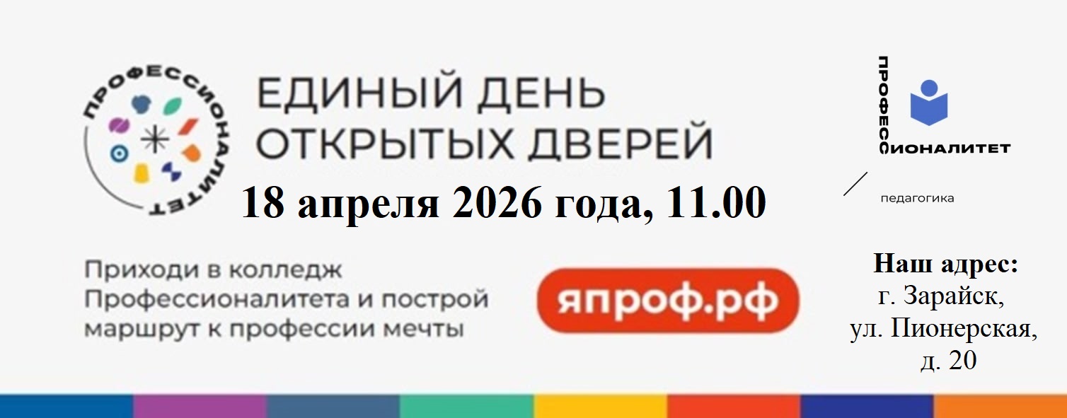 18 апреля 2026 года в 11:00 - Единый день открытых дверей (ЕДОД) в Зарайском педагогическом колледже