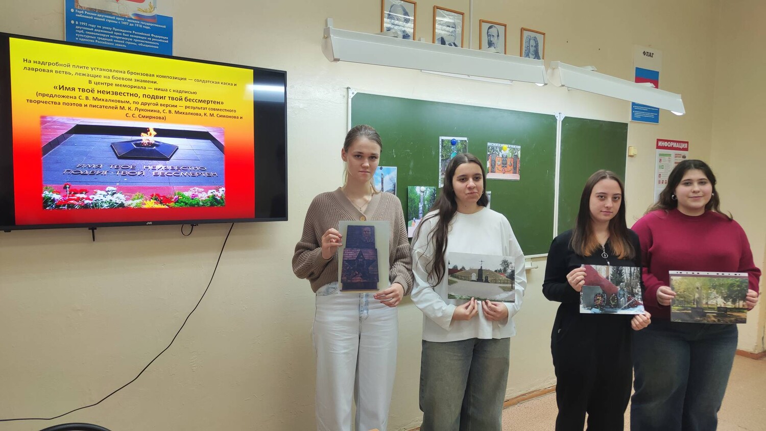 Сегодня преподаватель истории, Золотых И.Э., провела интерактив "Память бессмертна" для студентов второго курса, где поговорили об учреждении этой даты, памятных местах. Студенты в свою очередь рассказали о памятных местах своего города.