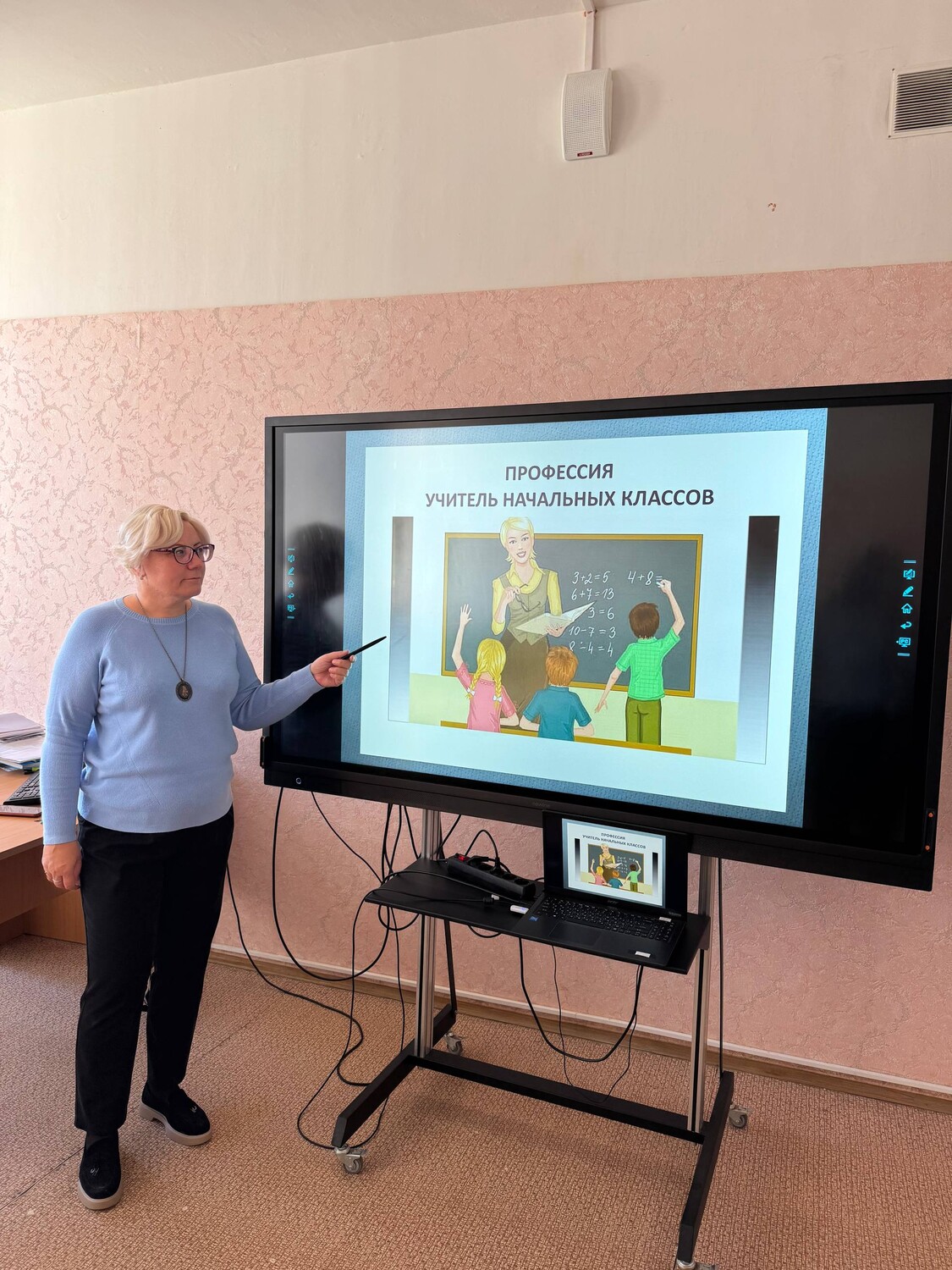 30 сентября 2025 года в рамках Всероссийского профориентационного проекта «Билет в будущее», который создан для ранней профессиональной ориентации учеников 6–11 классов, преподаватель Гуреева О.Н. познакомила школьников городского округа Зарайск с профессией учитель начальных классов. Учащиеся познакомились с данным профессиональным направлением, узнали о месте и перспективах профессионального направления в современной экономике региона, страны, мира, выявили необходимые навыки и знания для овладения профессией учитель начальных классов. В заключении школьники попробовали себя в роли учителя, самостоятельно подготовив и продемонстрировав дидактическую игру на интерактивном оборудовании по предмету «Окружающий мир» для детей младшего школьного возраста. | |
