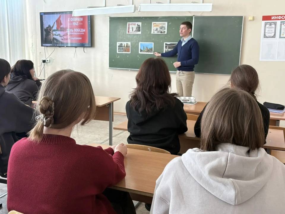 В филиале ГОУ ВО МО «Государственный социально-гуманитарный университет» в г. Зарайске состоялось мероприятие, посвящённое 83-й годовщине Сталинградской битвы. Преподаватель истории Дергачёв Сергей Николаевич провёл увлекательную и содержательную встречу со студентами, напомнив о событиях зимы 1942–1943 годов — одном из ключевых эпизодов Великой Отечественной войны. В ходе мероприятия прозвучали рассказы о мужестве и стойкости защитников Сталинграда, были показаны редкие архивные фотографии и хроника военных лет. Студенты поделились своими размышлениями о значении подвига советских солдат для будущих поколений. Такие встречи помогают сохранить историческую память и воспитать уважение к тем, кто отстоял свободу нашей Родины. Помним. Гордимся. Благодарим. | |
