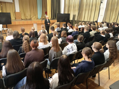 24 сентября, в рамках проведения "Месячника по профориентационной работе", студенты первых курсов Зарайского педагогического колледжа, по специальности 44.02.02 Преподавание в начальных классах, посетили площадку работодателя - МБОУ "Гимназия √2" г. Зарайска. Директор гимназии Штиф Е. А. подробно рассказала о школе и её структурных подразделениях. Рассказала о специфике работы в образовательном учреждении, о почетном звании Учитель. | |