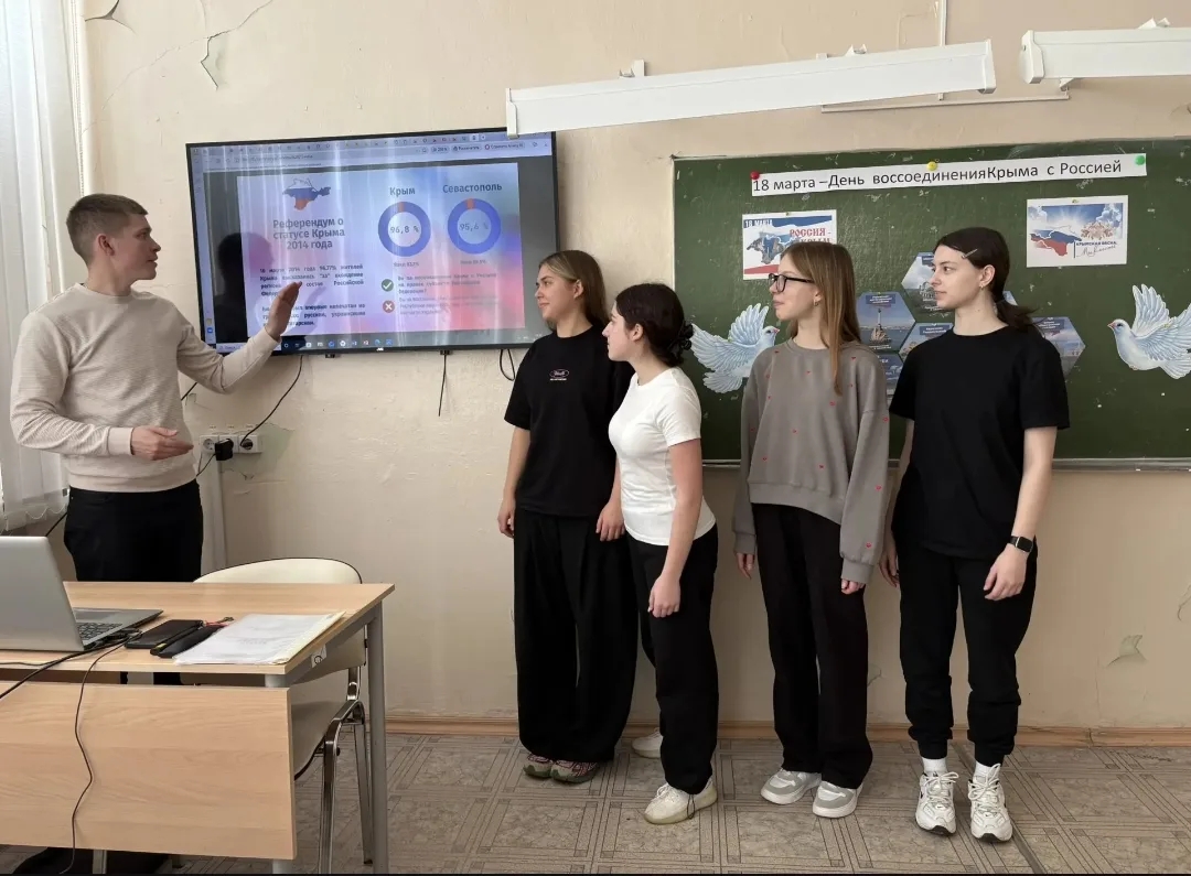 В этому году наша страна празднует 12 годовщину важного события - воссоединения Крыма с Россией. В связи с этим 18 марта преподавателем истории Дергачёвым Сергеем Николаевичем было проведено внеклассное мероприятие "День воссоединения Крыма с Россией". Студенты узнали о том, что Крым вернулся в состав нашей страны на основании референдумов, по результатам которых около 97℅ избирателей Республики Крым и 95,6℅ избирателя города-героя Севастополя проголосовали за восстановление полуострова с Россией. Это событие имеет глубокое историческое и геополитическое значение: Крым, с его древней историей и важным стратегическим положением на Чёрном море, на протяжении веков был неразрывно связан с судьбой России, на протяжении веков был неразрывно связана с судьбой России. С XVIII века он находился в составе Российской империи, а с 1921 года - в составе Российской Советской Федеративной Социалистической Республики. Несмотря на относительную "молодость" праздника, он любим в Крыму и Севастополе. Там проходит множество торжественных и праздничных мероприятий, приуроченных к этой дате. | |